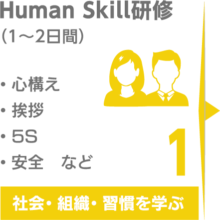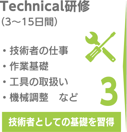 ワールドインテックは、社会人の第一歩を支える教育制度が充実しています。配属前研修ではビジネスマナー、社会のルールから、技術者の仕事に不可欠な機械操作などの専門技能まで、ステップバイステップで学ぶことができます。また、配属後も、現場教育訓練やキャリア形成訓練などをキャリアステージに応じて実施します。